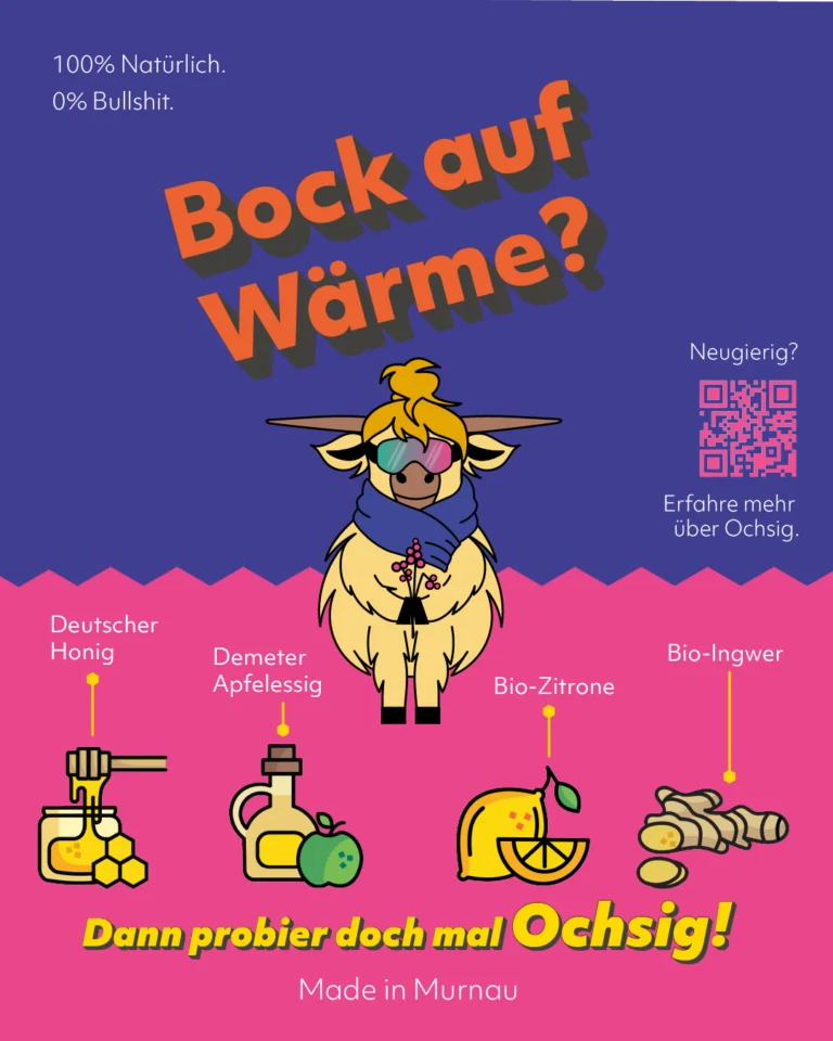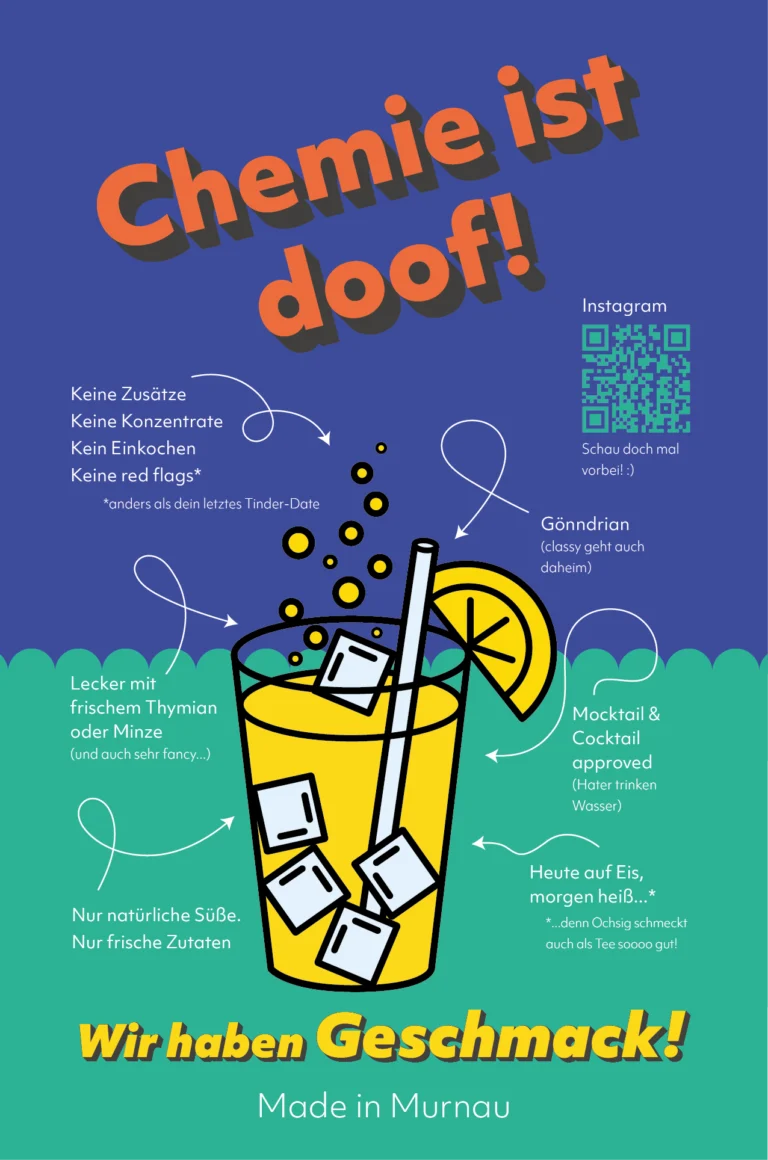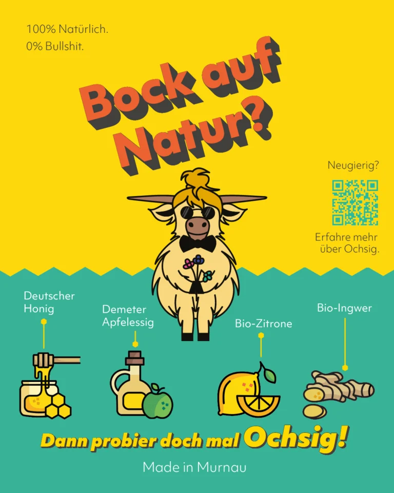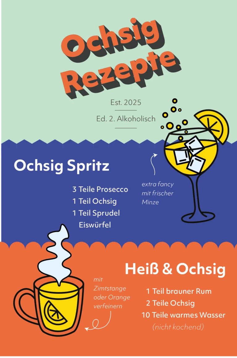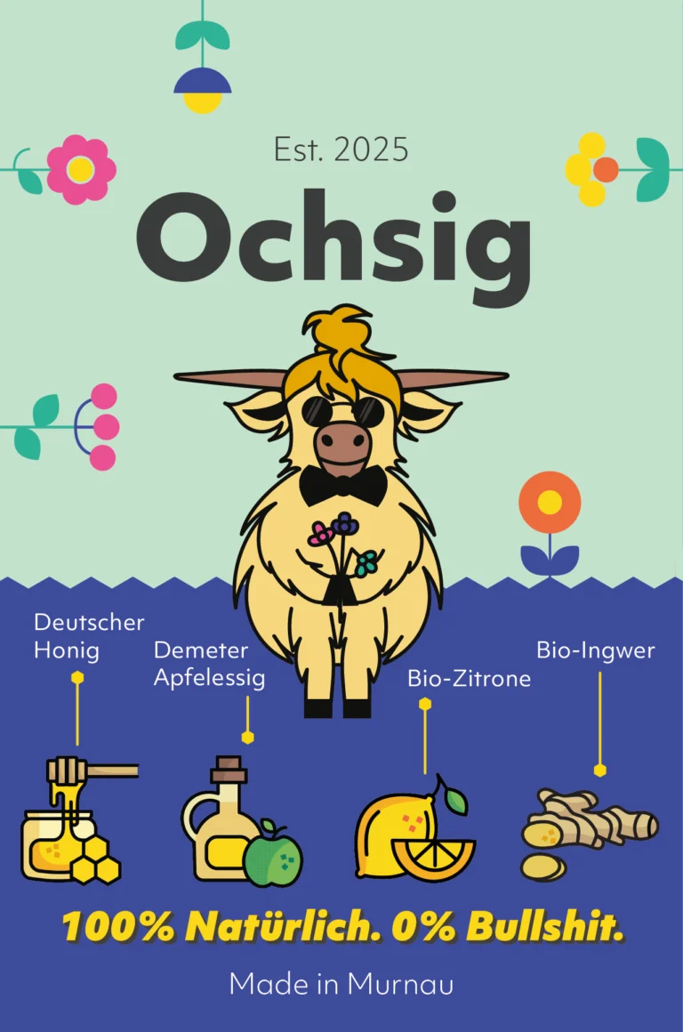 With this straightforward promise, Ochsig, a Bavarian oxymel brand, brings a traditional product into a new lifestyle-oriented context. Colorful, expressive and a little wild, the brand invites people to rediscover oxymel in lemonades, spritzers, tea or cocktails.